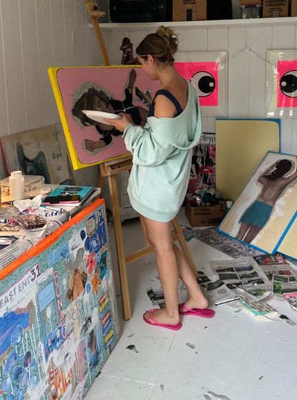 I am a mixed-media artist and designer. I grew up in East Hampton, where I attended EHHS. After graduating, I moved to the city to attend FIT. During my time at FIT, I developed skills in advertising, art direction, branding, graphic design, UX/UI design, and motion graphics. In May 2025, I graduated with a BFA in Advertising and Digital Design.