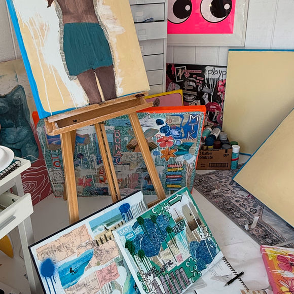 Each ÄK MIXED MEDIA piece combines layers of photography, textures, digital collages, local beaches, street signs, handwritten notes, and town names, capturing the essence of the East End. It's your memories made tangible. Like souvenirs, these personalized pieces bring authentic memories of the East End into your home, preserving the character of the place in every detail and keeping your connection to it alive no matter where you are.